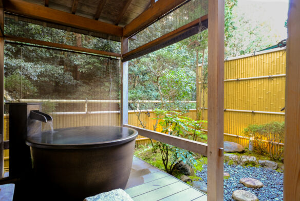 お客様に京都の四季を感じながら、日常を忘れゆっくりとお過ごし頂けるよう、タイプの異なる8種類のお部屋をご用意しております。露天風呂を備えた「露天風呂付客室」、また和室と洋室を備えた「露天風呂付洋室」、そして1室限定の「露天風呂付和洋室」など、お客様の旅に合わせた最適なお部屋をお選びいただけます。