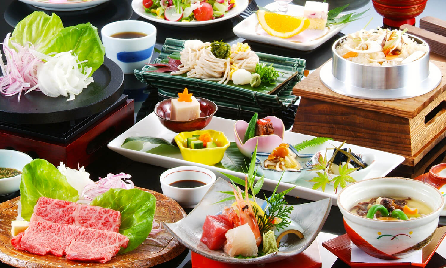 まずは四季折々の厳選食材を生かしたお料理へのこだわり、そして様々なニーズにお応えできる8種類の客室。