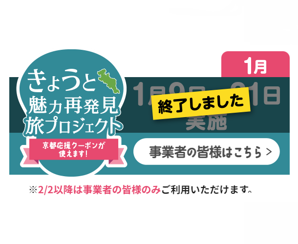 この度は「きょうと魅力再発見プロジェクト」への温かいご支援、誠にありがとうございました。2024年1月31日をもちまして、本プロジェクトは終了いたしました。