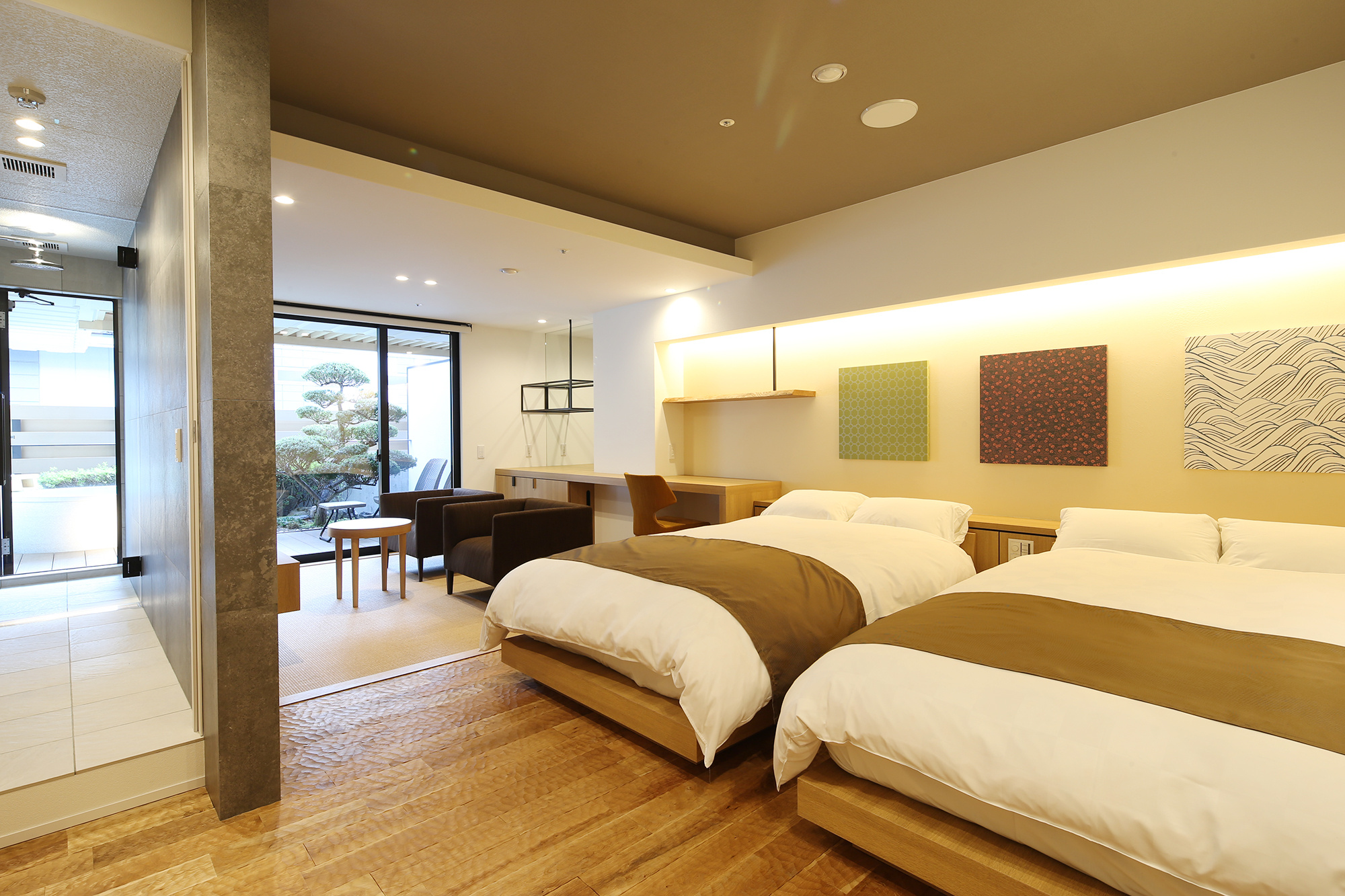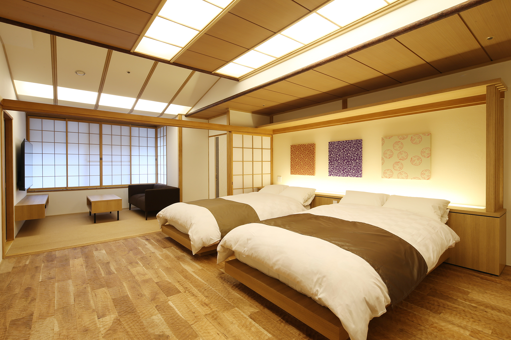客室は木のぬくもりが伝わる落ち着いた空間をご用意しました。京都の四季を感じながら、日常を忘れてゆったりとお寛ぎいただけます。