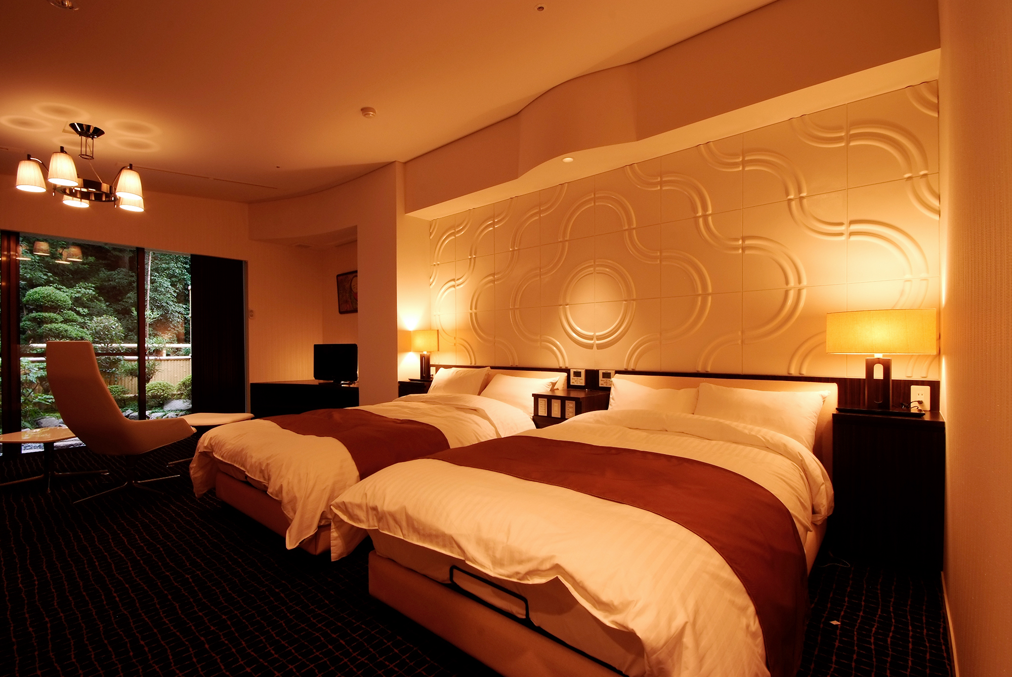 露天風呂を備えた「露天風呂付客室」、また和室と洋室を備えた「和洋室」、1室限定の展望風呂付客室など、