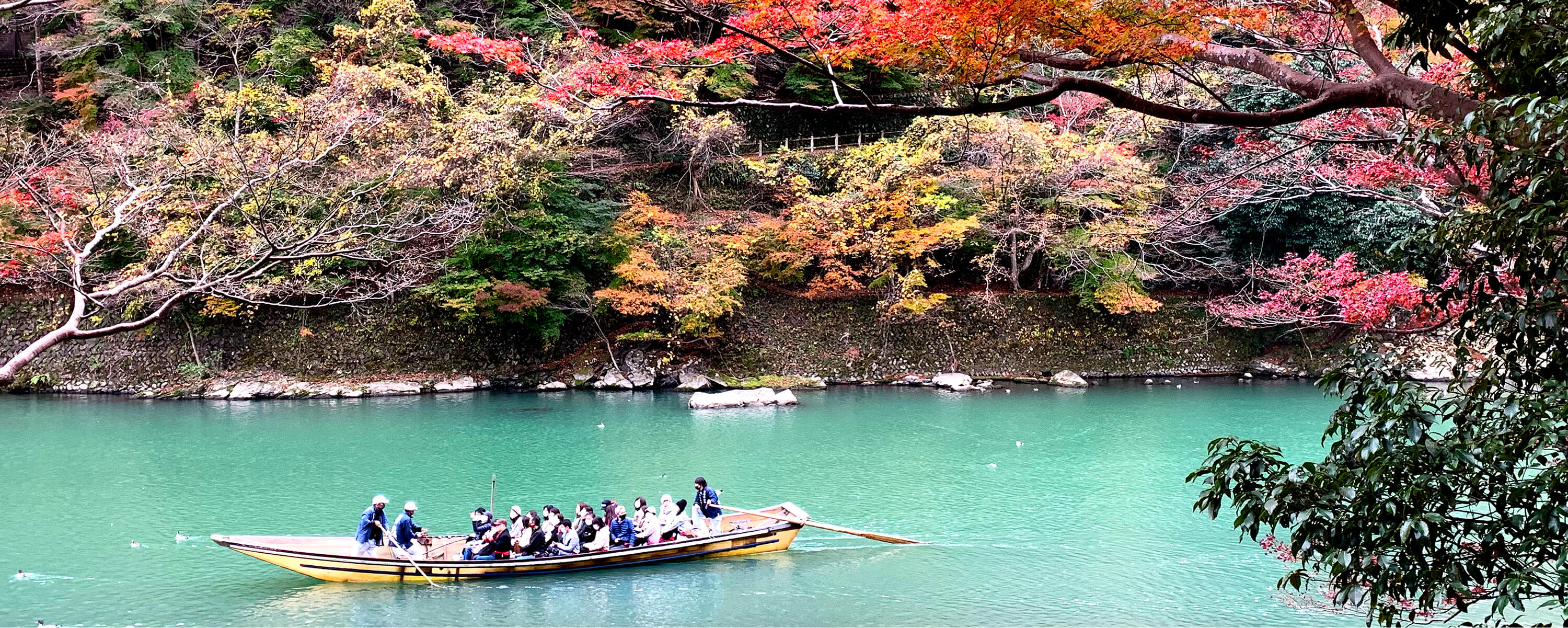 ご朝食を済ませたら保津川下りへ…亀岡から嵯峨嵐山までの約16km、2時間の船旅です。
